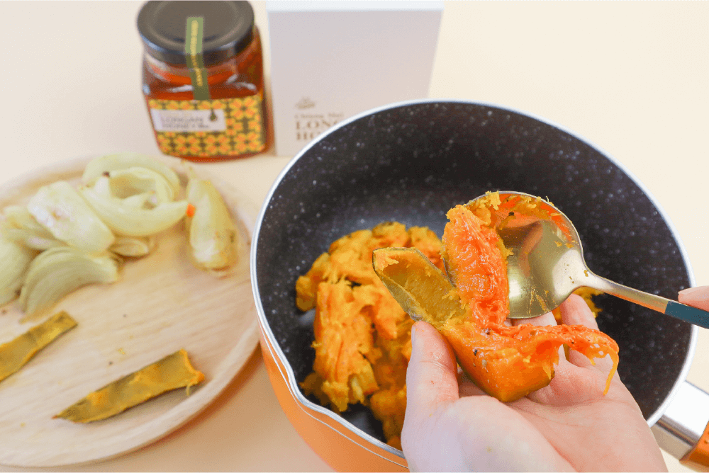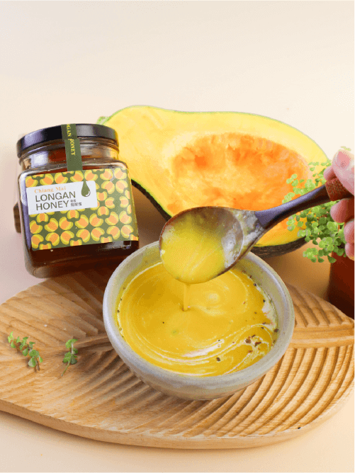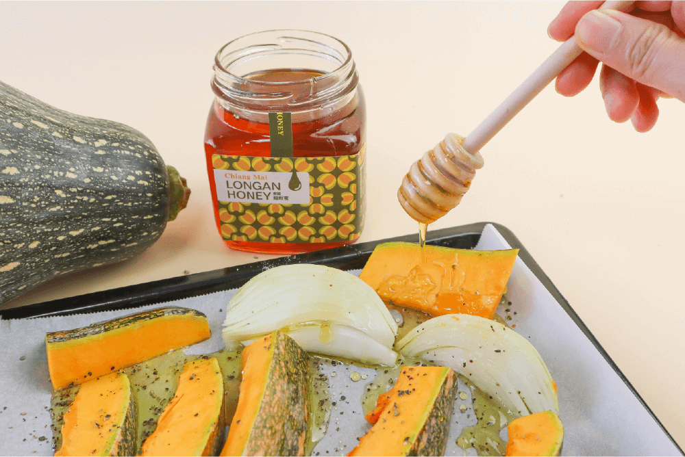 ➌ 本次蜂蜜使用泰國龍眼蜜,甜度高,與南瓜相搭很棒~