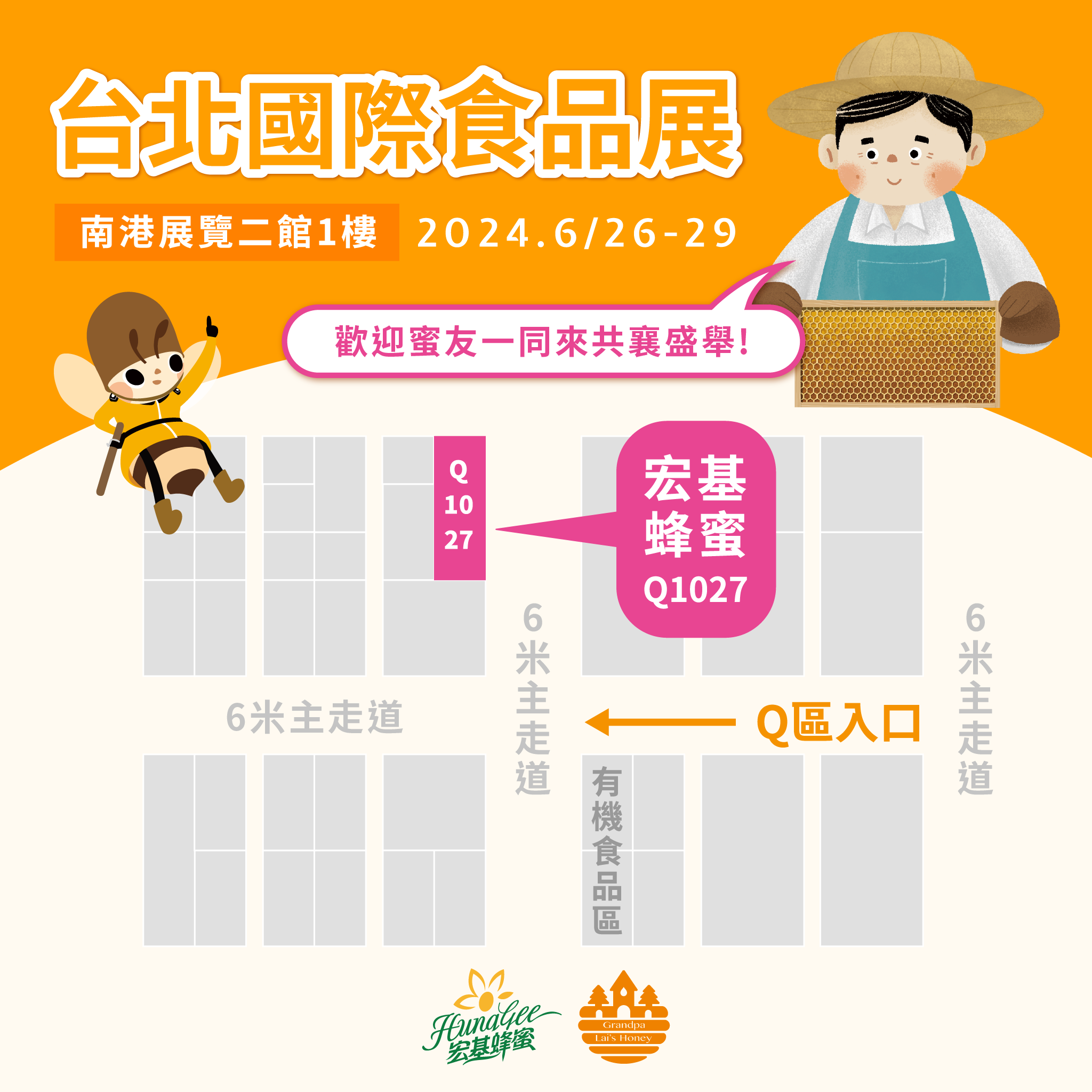 - 宏基蜂蜜位於:南港展覽館2館1樓 Q1027 主走道旁